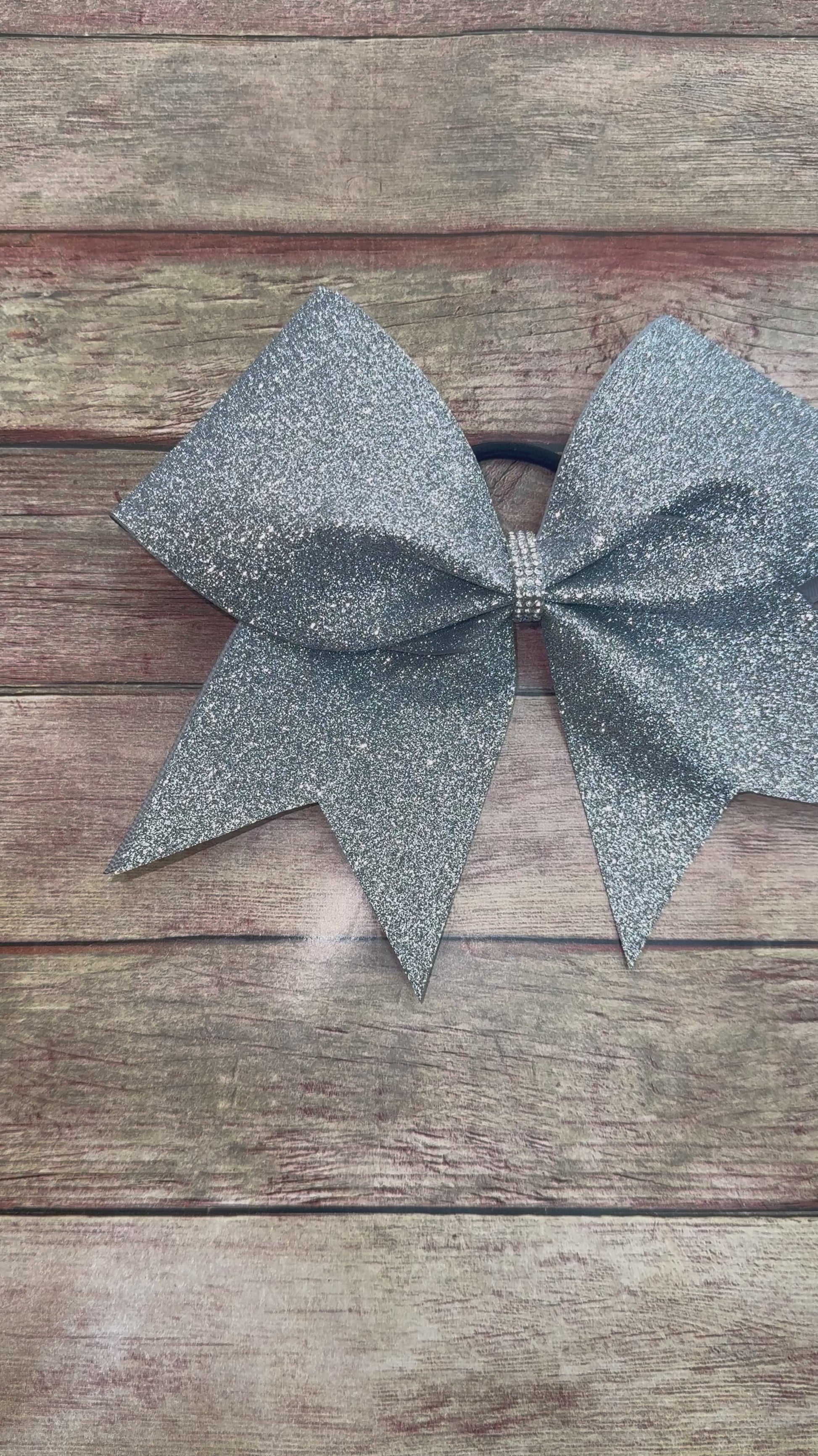 The silver glitter cheer bow is a dazzling and eye-catching accessory that adds a touch of sparkle to any cheerleading or dance routine. It is perfect for school teams, sports teams, and any occasion where school spirit is on display.