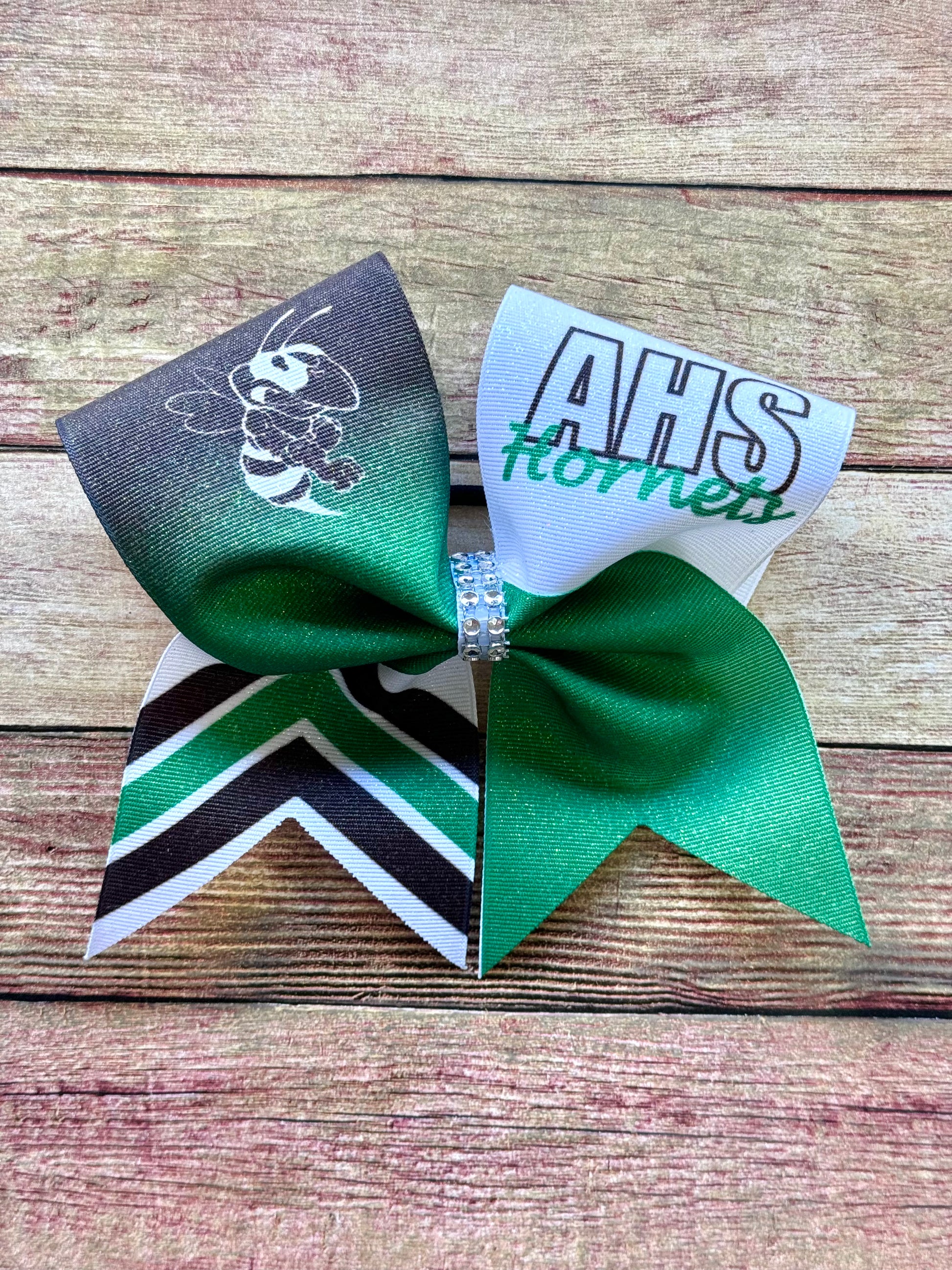Measuring approximately 7 inches loop to loop, this bow is the ideal size to make a statement. It's designed to be seen and admired from all angles, ensuring that your team's logo and name are prominently displayed.